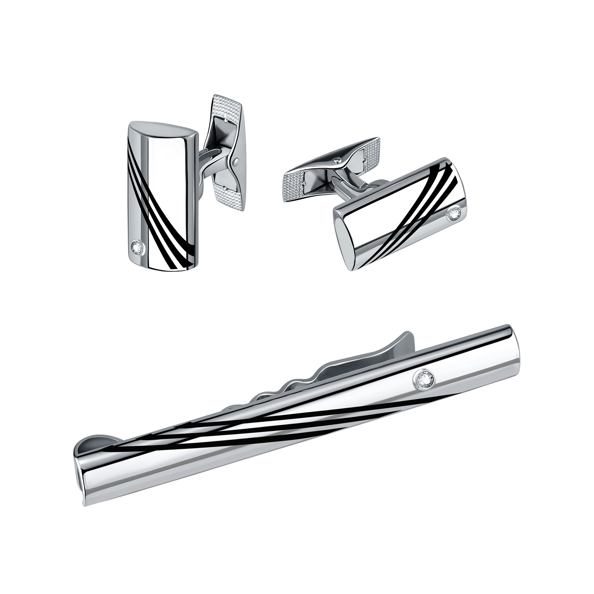 Набор запонки и зажим из серебра 925 пробы