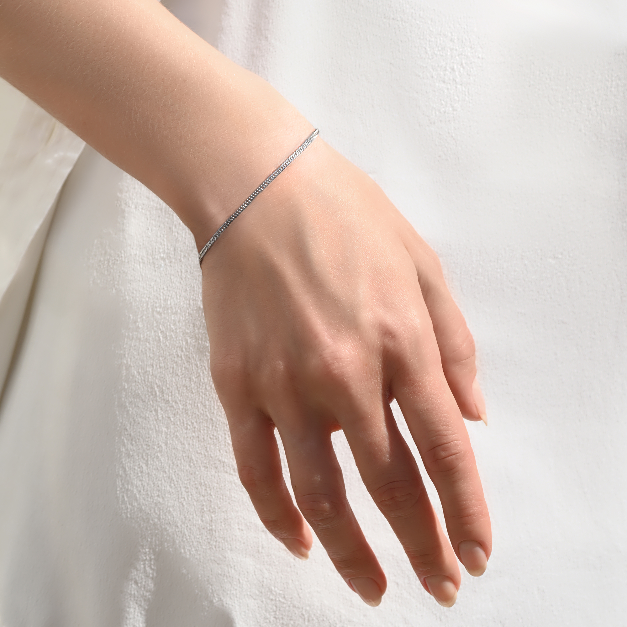Тип Браслеты Проба Ag 925 Средний вес 2.85 Цвет Металла Белый Варианты Дизайна Геометрия Обработка Металла Алмазная грань, Родирование белое Гендер Для женщин