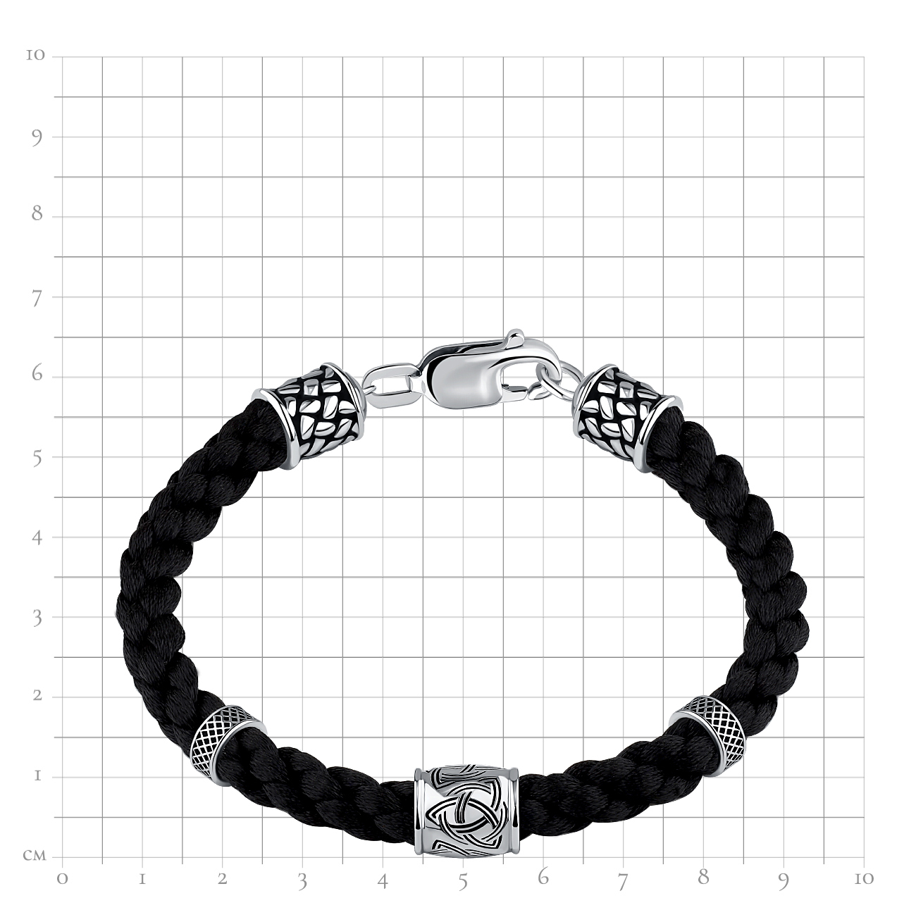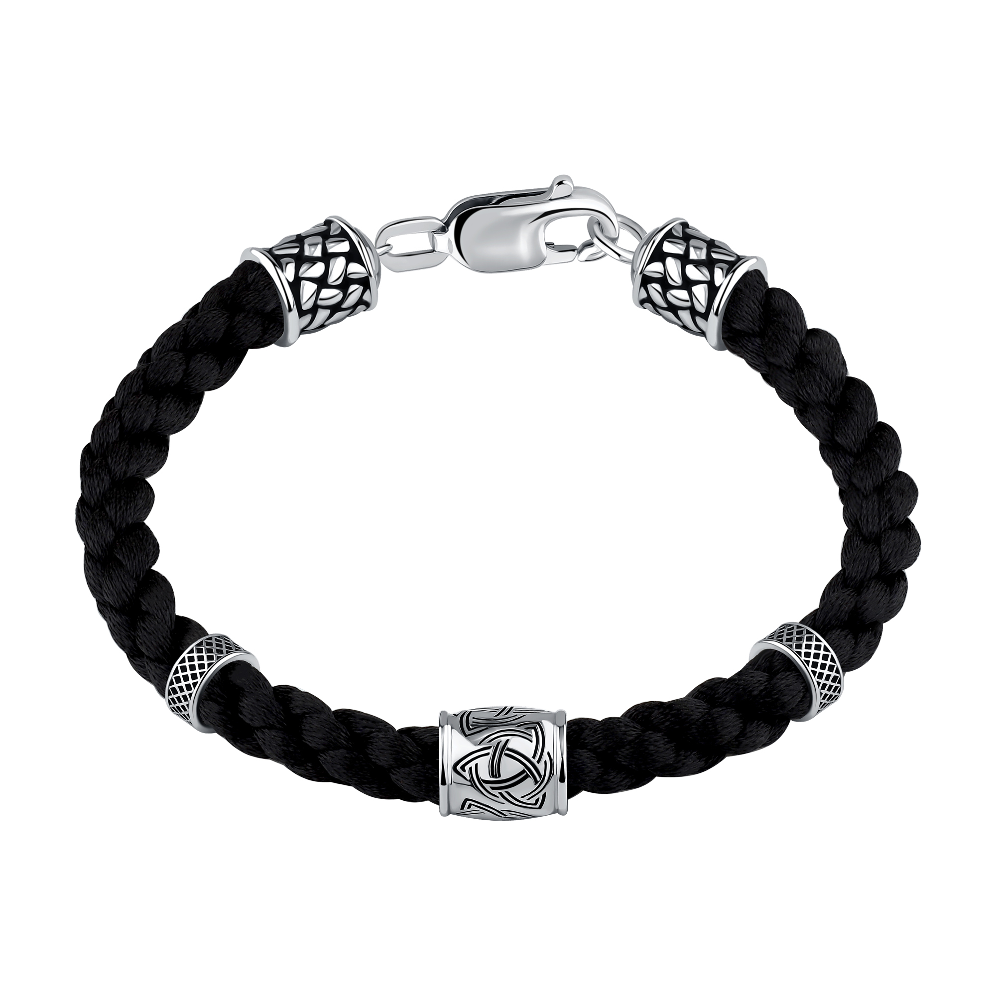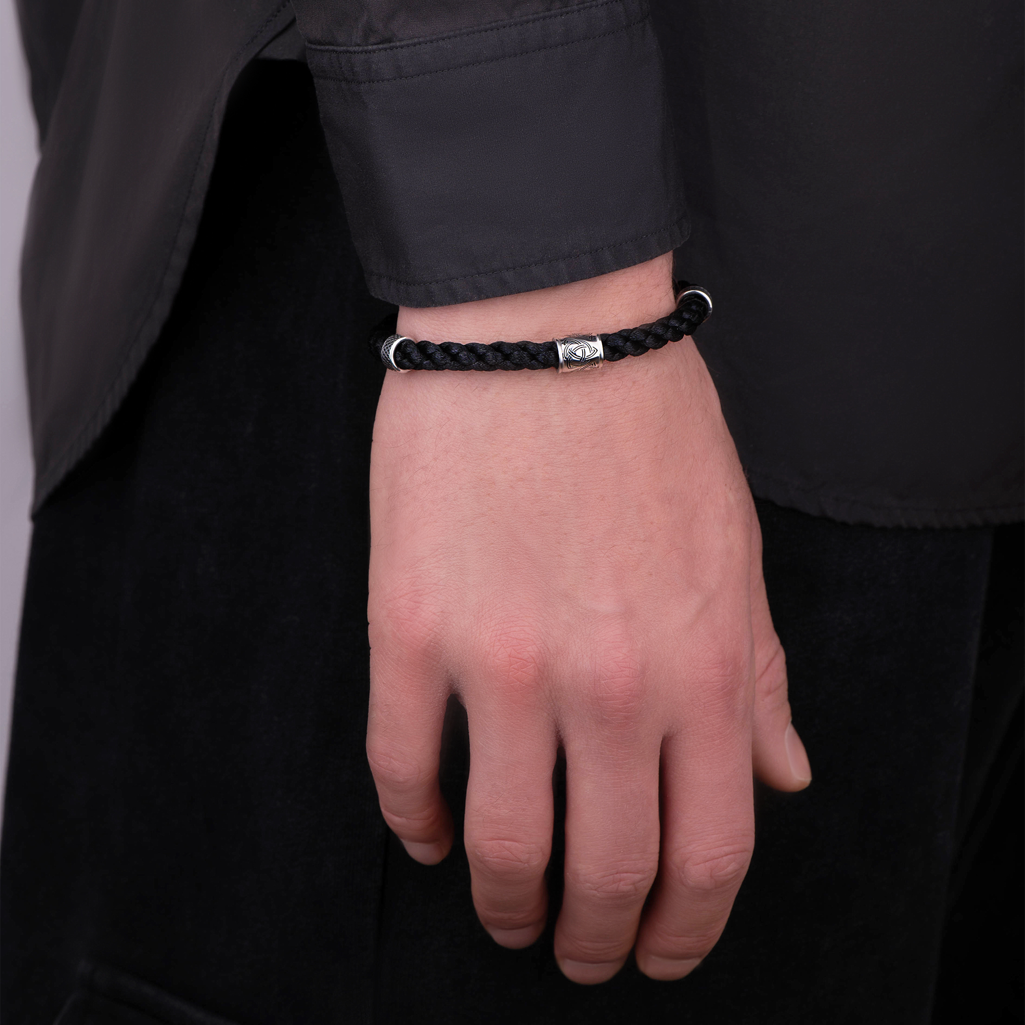 Браслет из черного шнурка с серебром 925