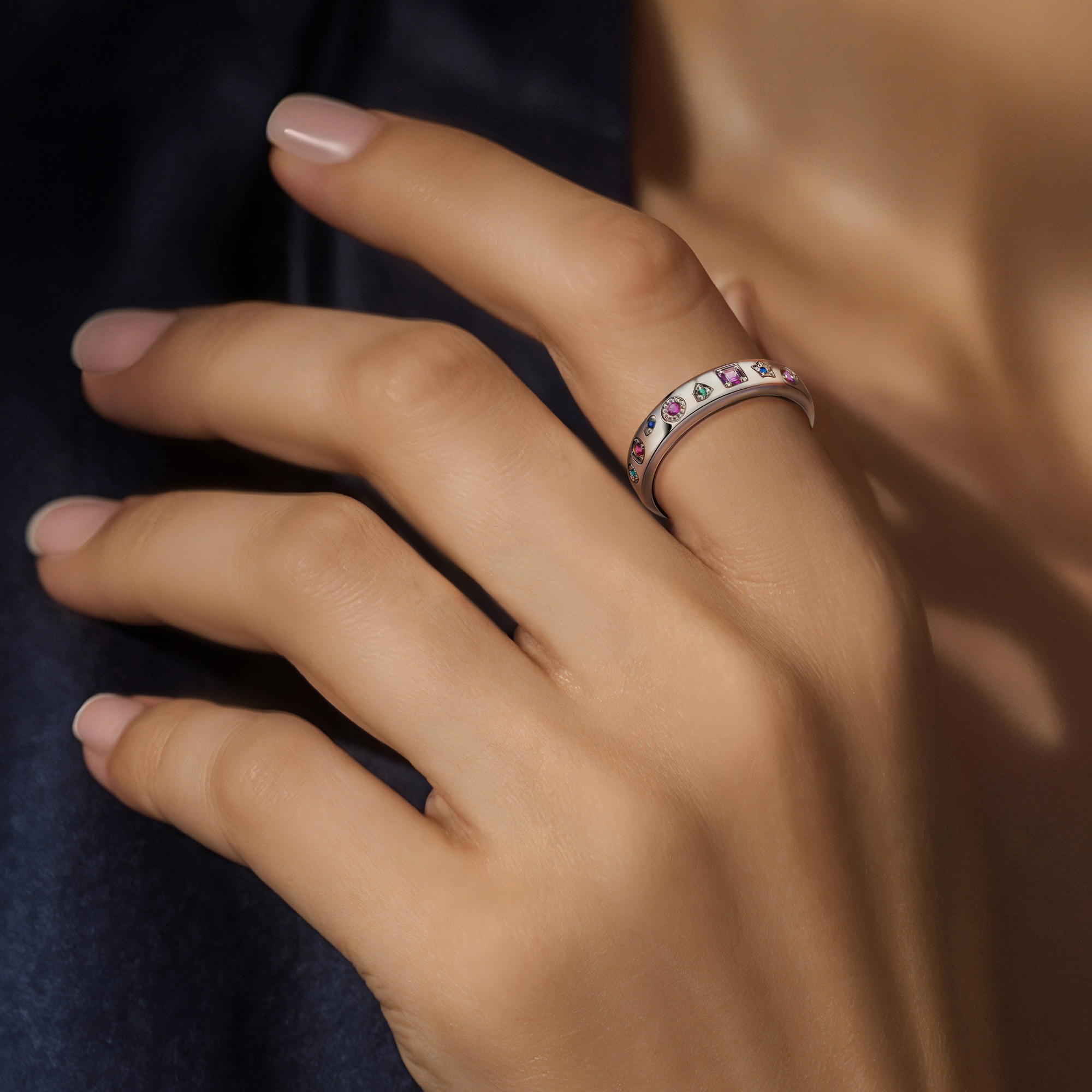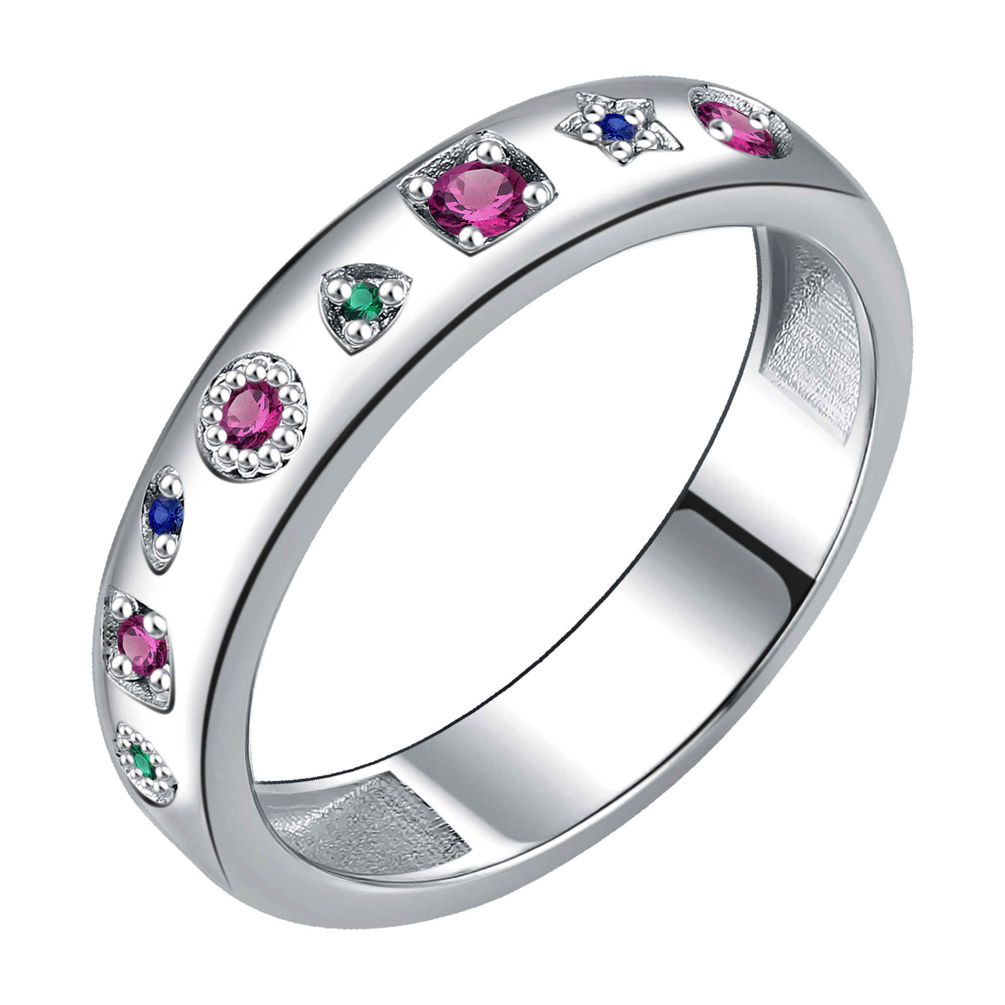 Объемное кольцо «Конфетти» — это взрыв цвета и энергии в вашем образе! Смелое сочетание зеленых, синих и красных фианитов создает динамичный и праздничный эффект. Это серебряное кольцо с дизайном, которое расскажет о вашей яркой индивидуальности и любви к жизни.
