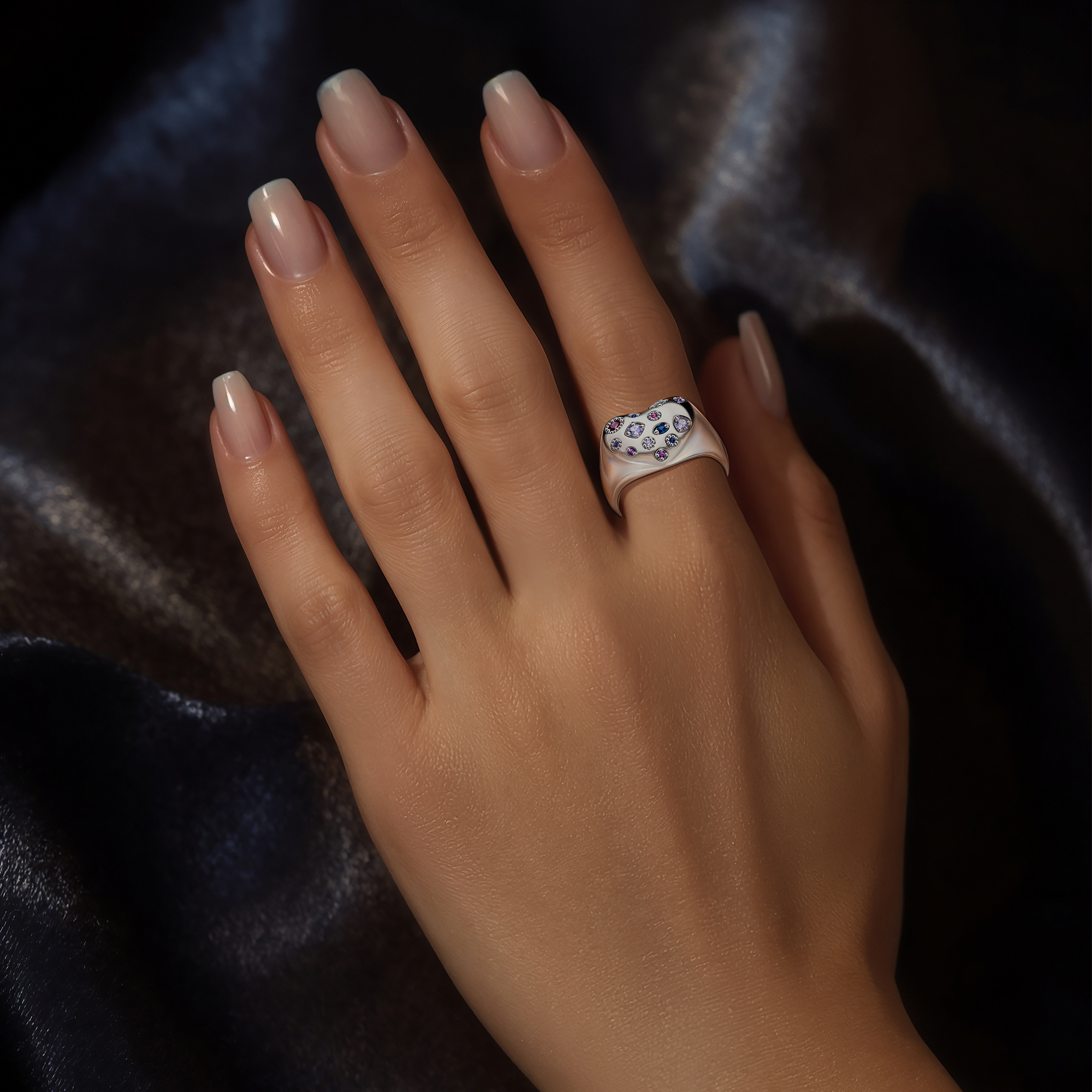 Объемное кольцо «Конфетти» в форме сердца — это трогательное признание в стиле праздника! Нежная форма, украшенная россыпью разноцветных фианитов, говорит о любви и радости лучше любых слов. Это трендовое украшение создано дарить эмоции.