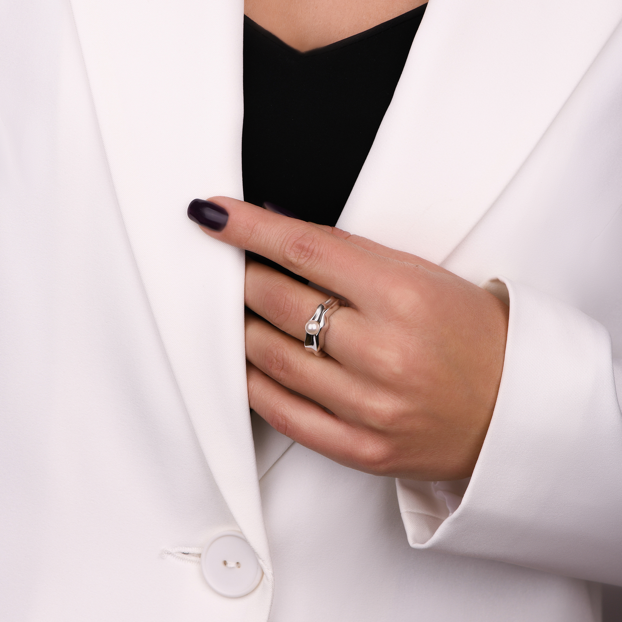 Тип Кольца Проба Ag 925 Вид кольца Декоративные Средний вес 3.285 Цвет Металла Белый Варианты Дизайна Волна, Шар Обработка Металла Родирование белое Гендер Для женщин -