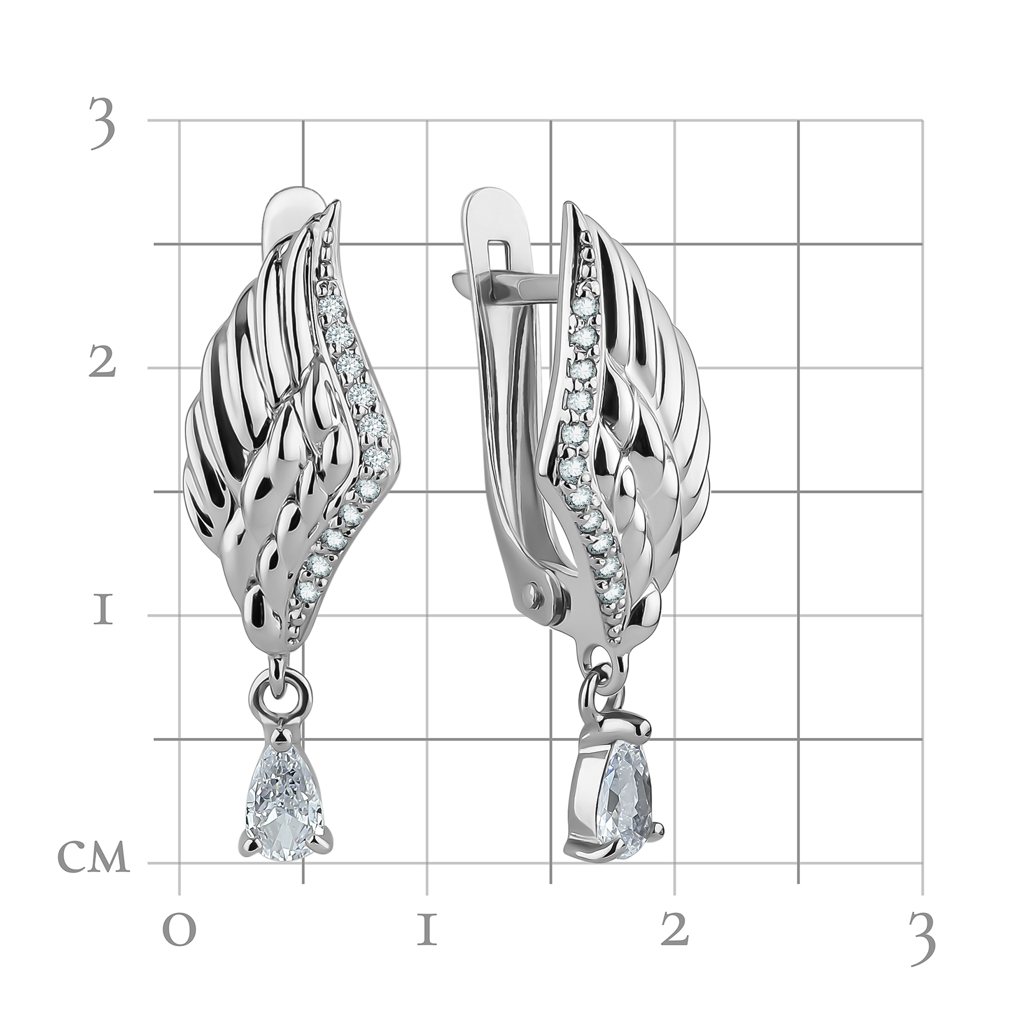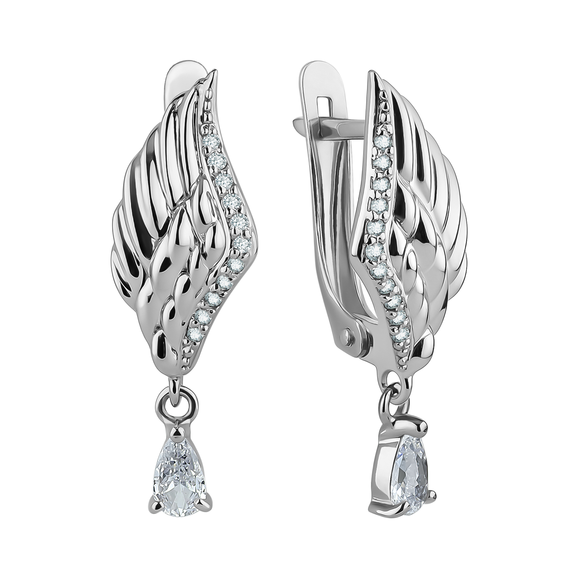 Тип Серьги Проба Ag 925 Тип И Размер Замка Серег Английский Средний вес 2.69 Цвет Металла Белый Варианты Дизайна Крылья Обработка Металла Родирование белое Гендер Женский -