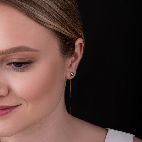 Серьги продевки из желтого золота 585 пробы