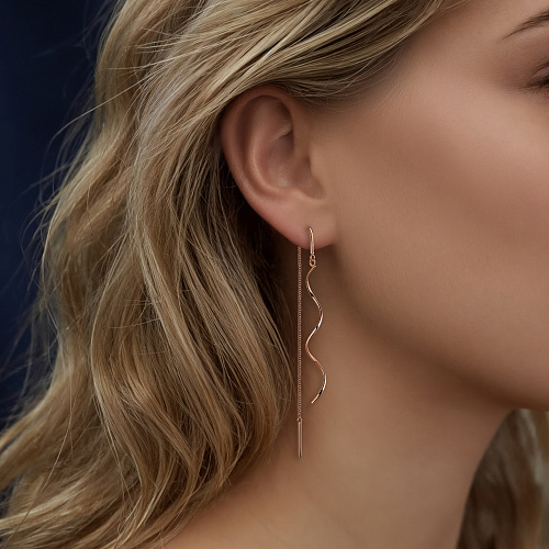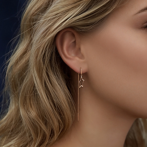 Серьги продевки из красного золота 375 пробы