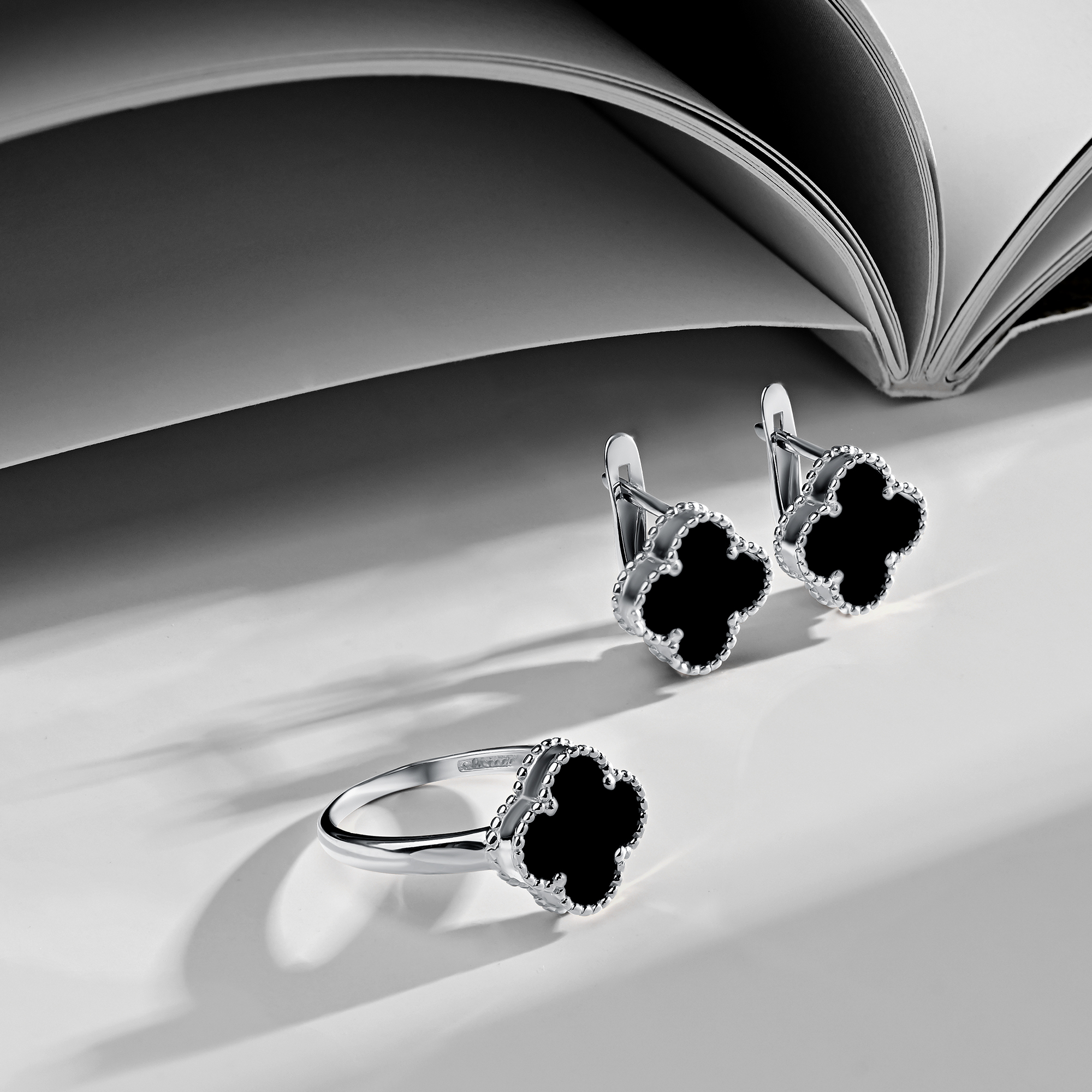 Название камня Эмаль Оникс Тип камня Синтетические Форма Огранки Четырехлистник Цвет Вес 1.555 Количество 1