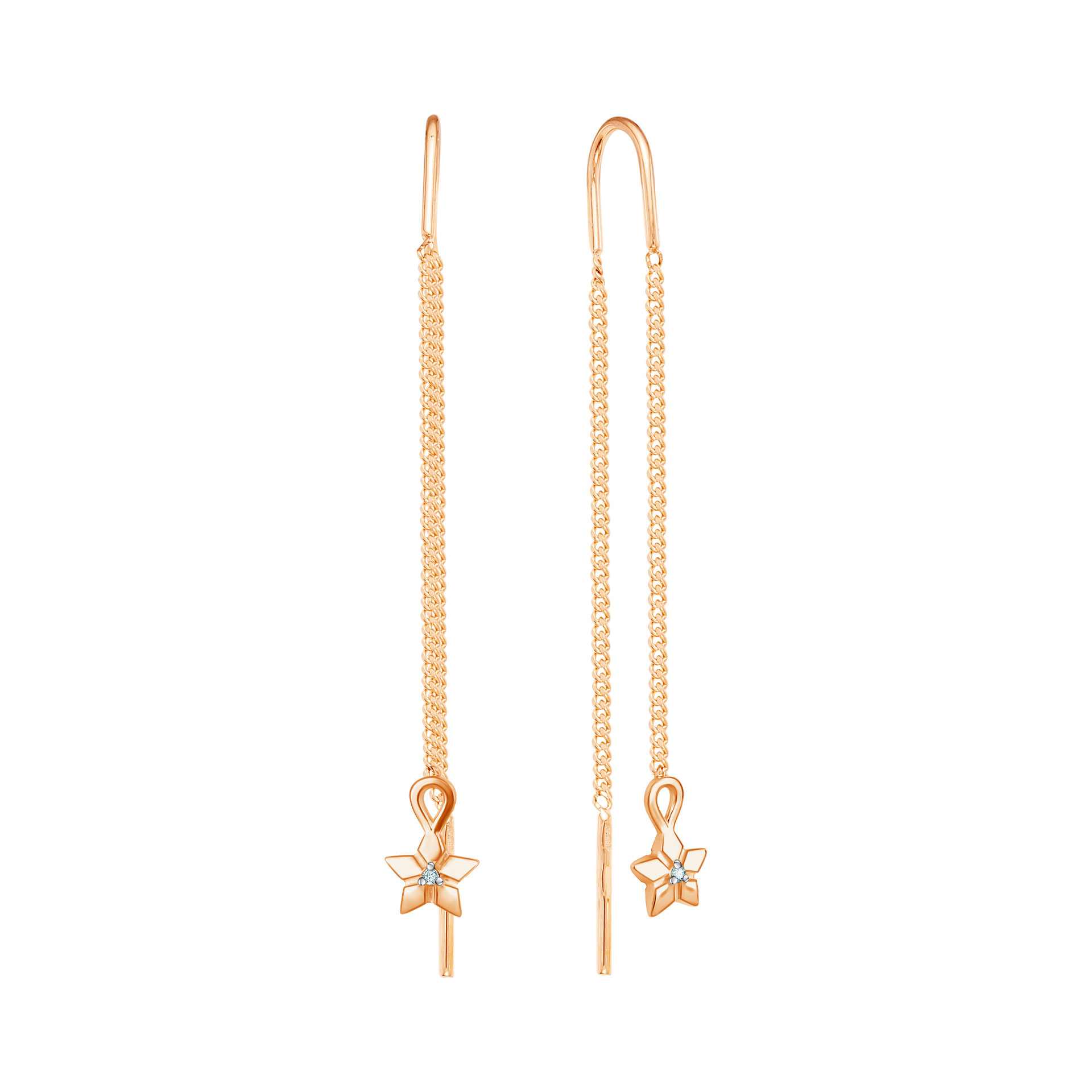 Серьги продевки из красного золота 585 пробы