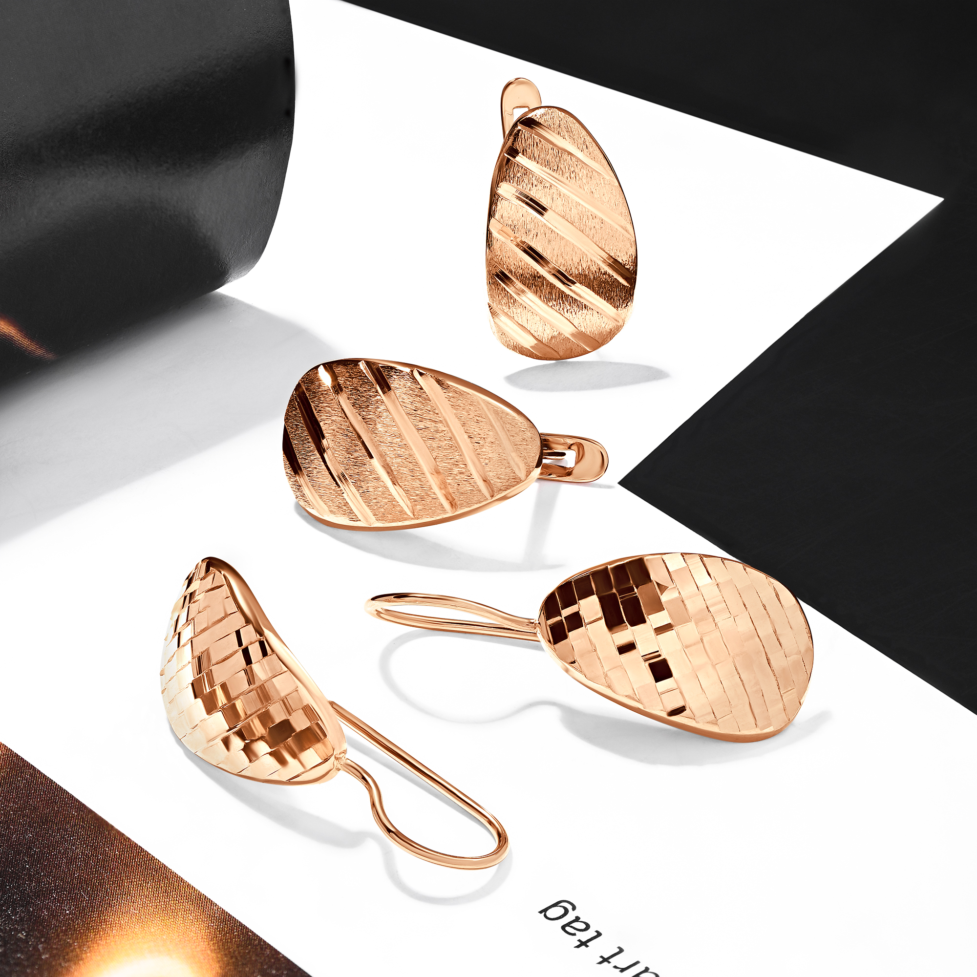 Тип Серьги Проба Au 585 Тип И Размер Замка Серег Английский Средний вес 1.93 Цвет Металла Красный Обработка Металла Алмазная грань Гендер Для женщин