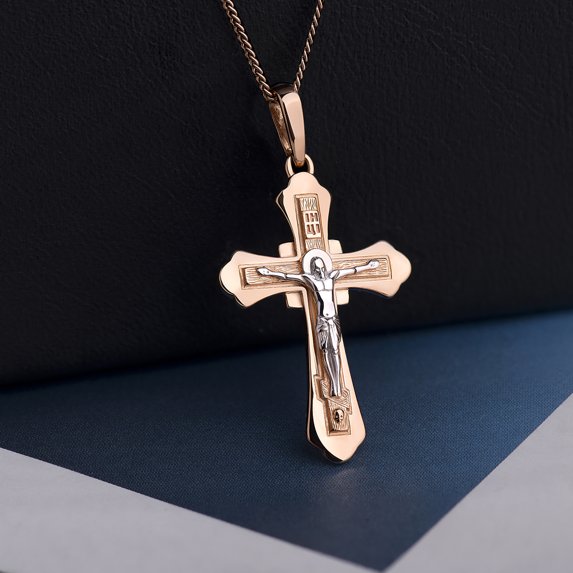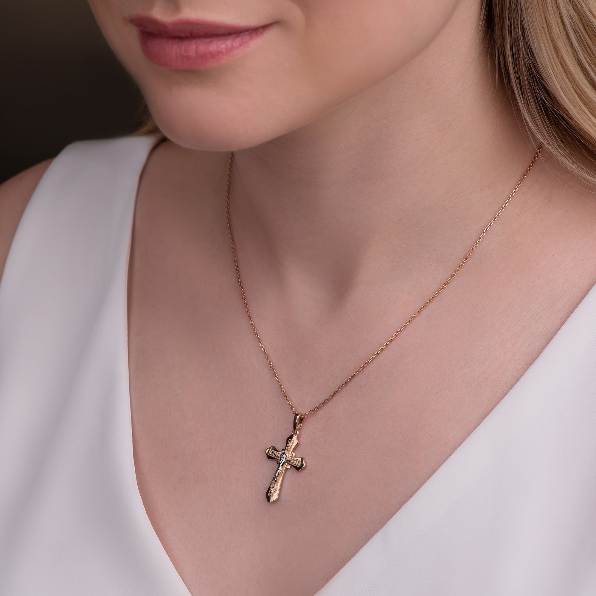 Подвеска - крест из красного золота 585 пробы